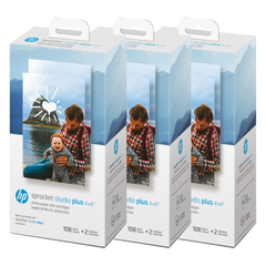 HP Sprocket Studio Plus 4 x 6” Photo Paper and Cartridges, made to give you more. Print gorgeous 4” x 6” pictures with a sizeable pack of HP Sprocket Studio Plus paper and cartridges. This combo pack comes with 324 sheets of photo paper and 6 ink cartridges. The premium, top-notch quality of this paper will instantly give you prints with detailed, lively images. The cartridges are easy to install and will quickly load up your printer with the ink it needs.